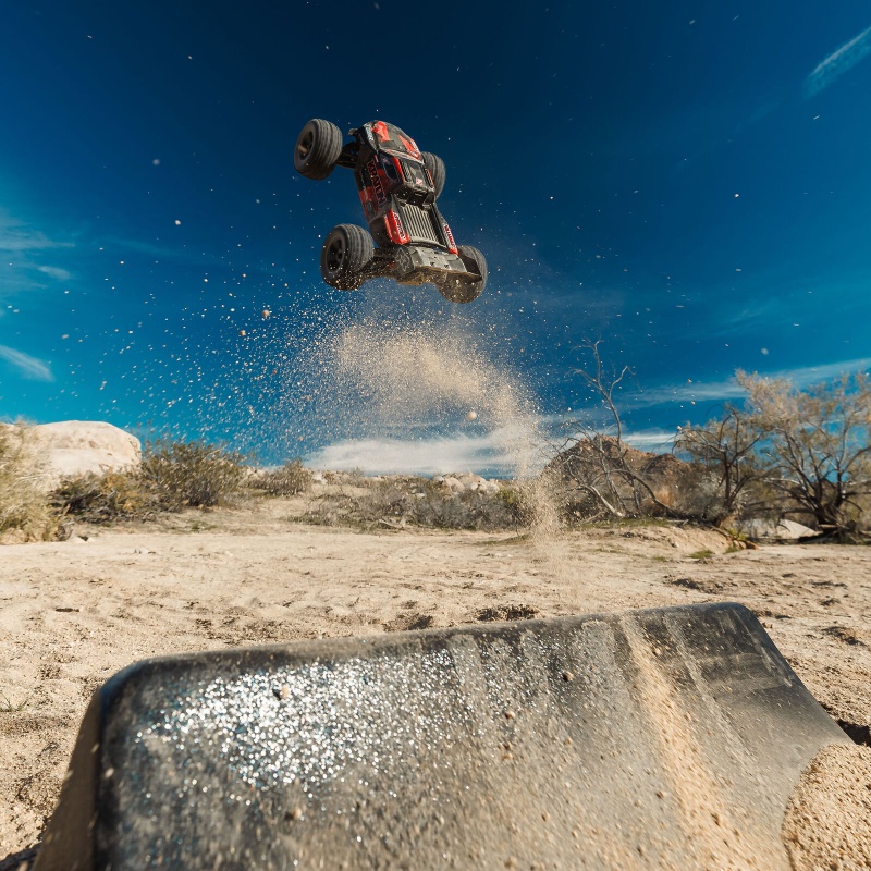 Its compact footprint hides a full arsenal of ARRMA strength. The mini chassis uses reinforced components and heavy-duty bumpers for the kind of durability that lets you go wild without thinking twice. The aggressive body comes in bold factory paint with a quick release clipless system for fast pit stops and even faster bragging rights.