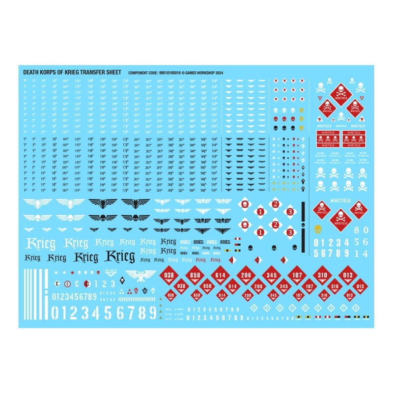 This kit comprises 130 plastic components, and 10x Citadel 25mm Round Bases. This set also includes 1x Death Korps of Krieg Transfer Sheet containing 803 waterslide transfers to customise your models.