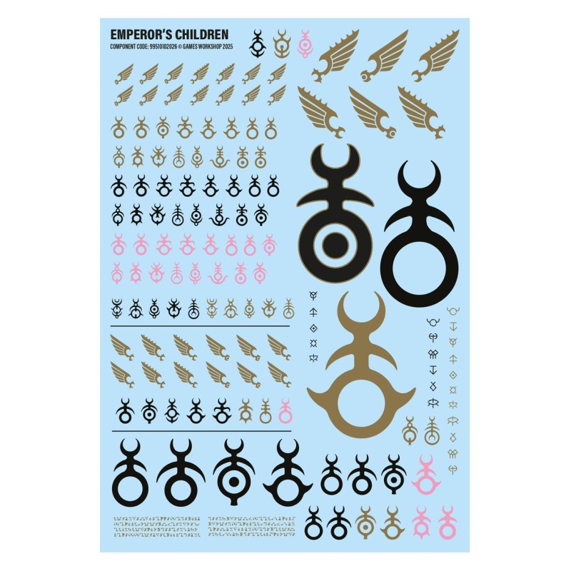 This kit comprises 123 plastic components, 6x Citadel 40mm Round Bases, and 1x Emperor's Children Transfer sheet containing 150 high-quality waterslide transfers to decorate your miniatures.