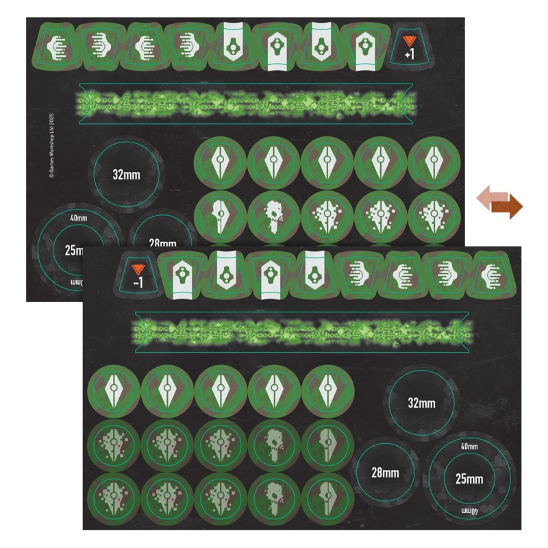 Inside the box, you will also find a sheet of 28 double-sided Canoptek Circle tokens, so you can easily keep track of your weapons loadout and in-game effects in the heat of battle.