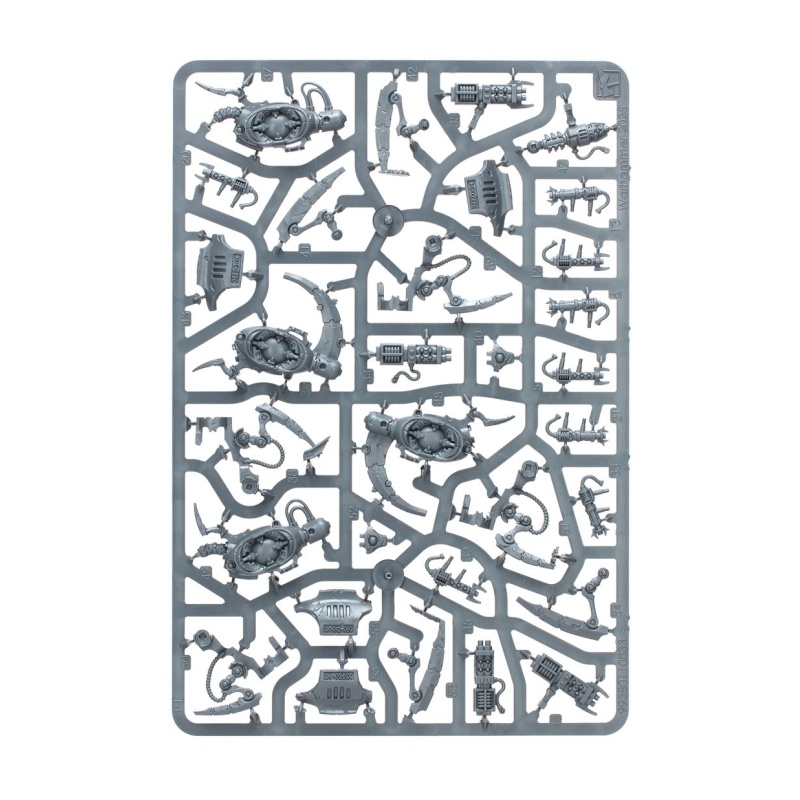 This multipart plastic kit builds eight Canoptek Circle miniatures. These miniatures can be used as relentless Canoptek Circle operatives in games of Kill Team, or fielded in a Necron army in games of Warhammer 40,000. The kit builds one Geomancer, two Tomb Crawlers, and five Macrocyte Warriors. A choice of weapon options is included in the kit to customise your Tomb Crawlers and Macrocyte Warriors, plus components to build specialists like the empowering Macrocyte Accelerator and repairing Macrocyte Reanimator.