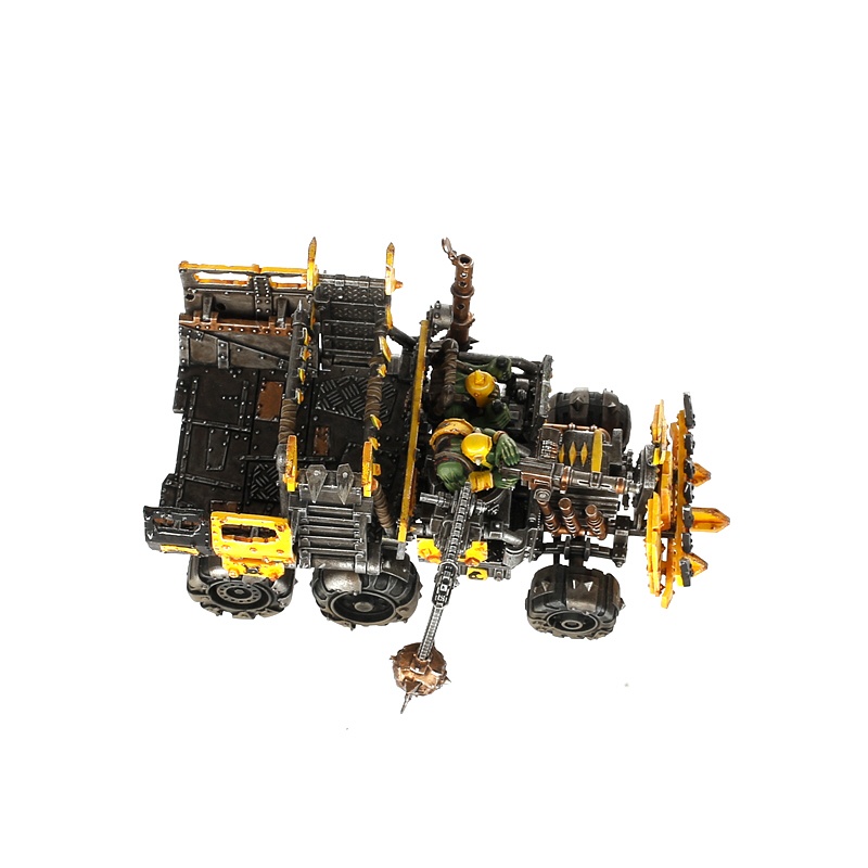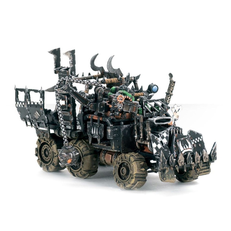Trukks are designed to transport mobs of choppa-wielding Boyz into combat as quickly as possible. Each warband and clan will 'kustomise' its trukks to reflect their own predilictions. For example, a Goff vehicle will be functional with a large crew compartment, while the Evil Sunz almost always have turbo-charged engines and a red paint job.