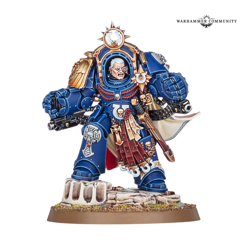 The greatest Ultramarine besides the Primarch himself, Marneus Calgar is equally potent a warrior on the battlefield as he is a leader in the command bunker. While he often deploys in an artificer-crafted suit of Gravis armour, he has also been known to still wear the ancient Armour of Antilochus. This relic Terminator armour suit incorporates the Gauntlets of Ultramar – and Calgar operates it with enough agility that he can join almost any infantry squad the Ultramarines choose to field in battle.