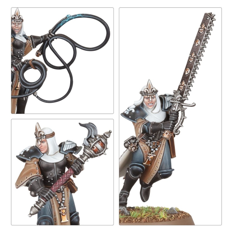 – 1x Novitiate Superior, armed with a bolt pistol, boltgun, or plasma pistol and a close combat weapon, with three head options and two backpack icons