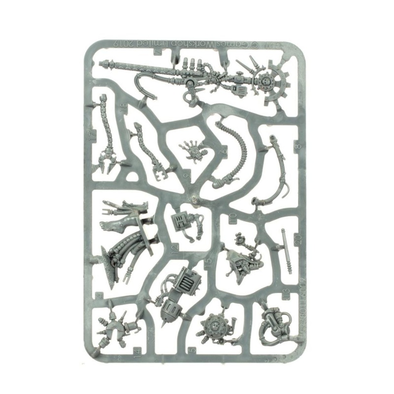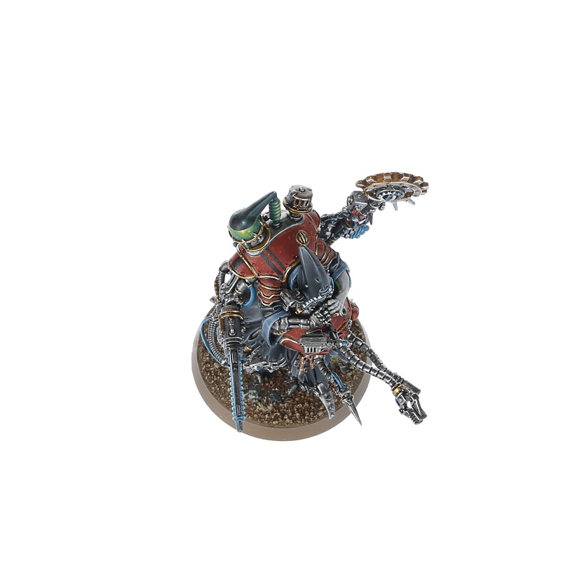 The Tech-Priest Manipulus miniature carries an Omnissian staff and has a choice of either an infantry-shredding transonic cannon or armour-busting magnarail lance as a ranged weapon. The Manipulus also features a mechadendrite harness to help him perform battlefield repairs – and to pull bits off his enemies should they stray too close!