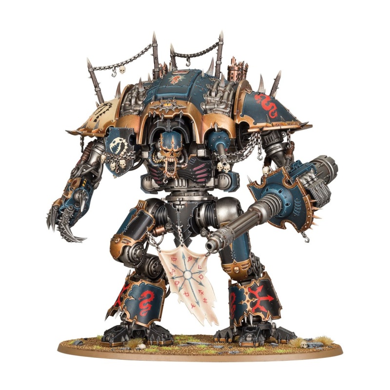 – Knight Desecrator, armed with desecrator laser destructor, diabolus heavy stubber, and either a reaper chainsword or a warpstrike claw