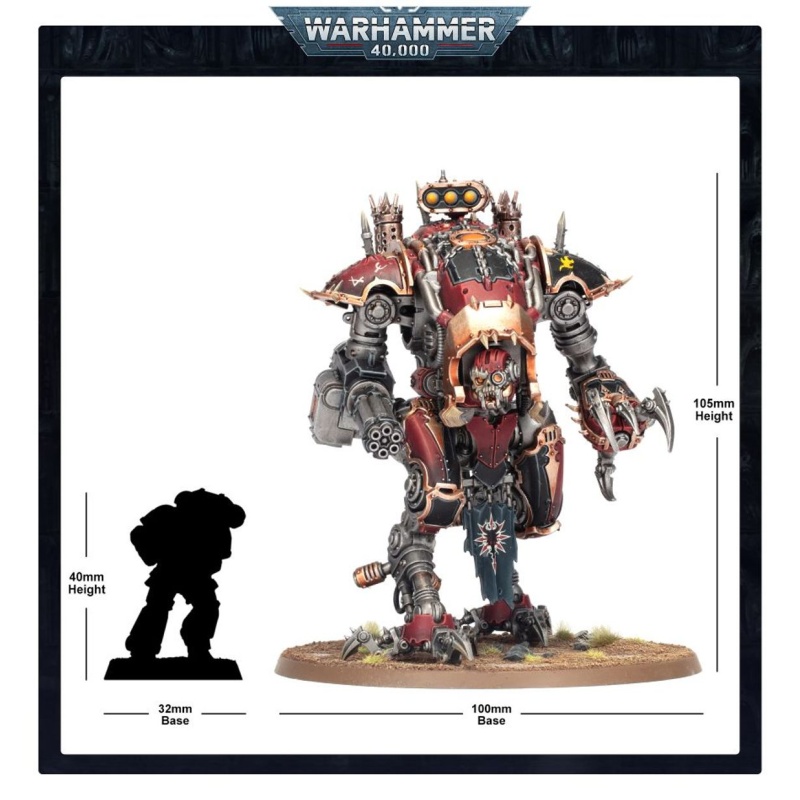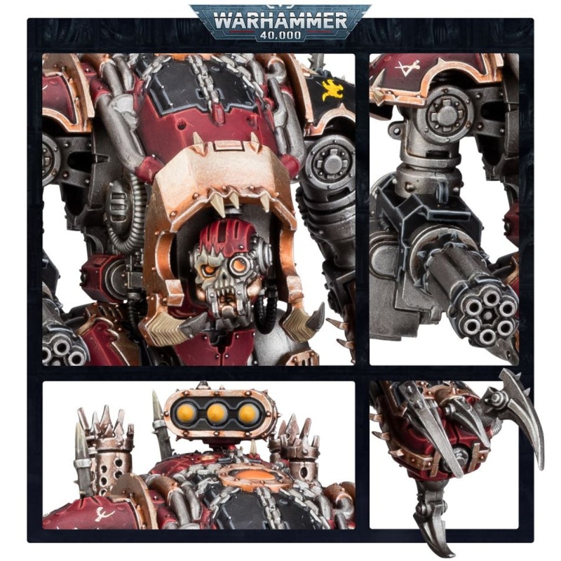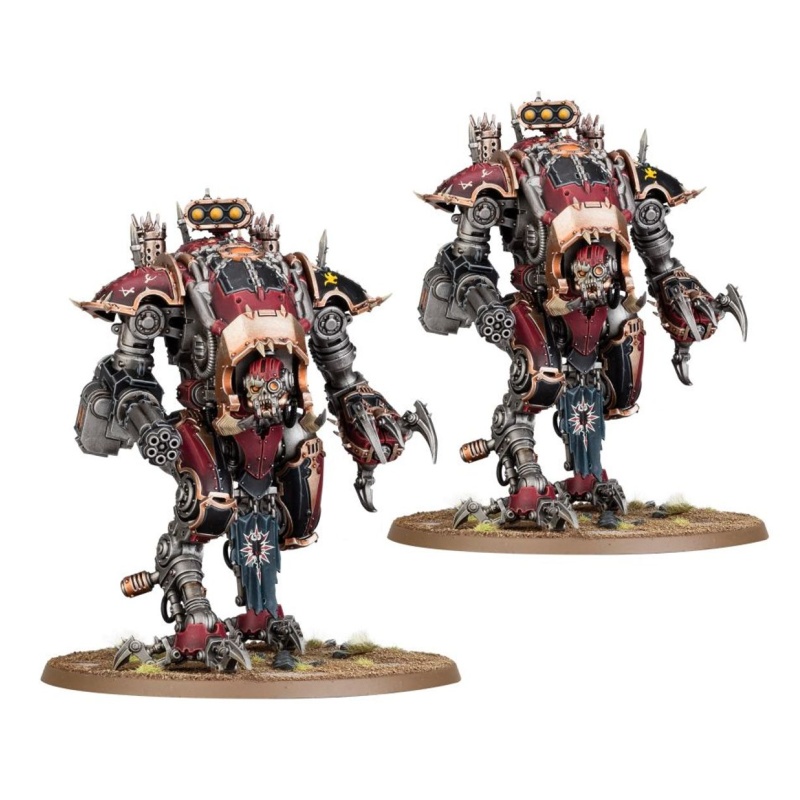 – War Dog Stalker, armed with avenger chaincannon (which can be replaced with a daemonbreath spear), slaughterclaw (which can be replaced with a reaper chaintalon), and diabolus heavy stubber