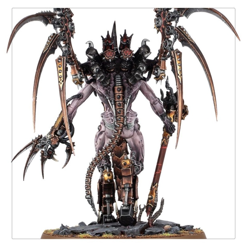 Vashtorr is the Soul Forge King, a daemonic demigod of unrestrained invention and abominable artifice. When the Arkifane takes physical form, it is as a horror of pallid flesh stretched over infernal mechanisms, soaring to battle amidst a cloud of lightning and smog. Vashtorr deals destruction with every whirring step, unleashing techno gheist curses upon his foes even as he fashions enhancements for his indentured daemon engines from the raw stuff of realspace.