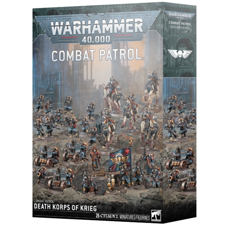 If you want to sacrifice yourself in the name of the God-Emperor, this box is the perfect way to start a new Death Korps of Krieg collection – or expand an existing army – and save money compared to buying the kits individually. A Command Squad lead the charge, followed by a dependable infantry squad. Heavy weapons provide covering firepower while Death Riders outflank the enemy, ready to strike with their vicious sabres. These 26 plastic miniatures represent a complete Astra Militarum force for use in tight, tactical Combat Patrol games of Warhammer 40,000.