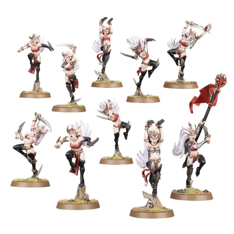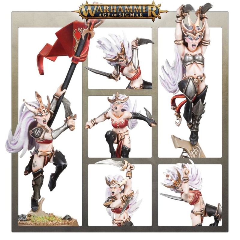 The Witch Aelves come as 134 components, and are supplied with 10x Citadel 25mm Round bases and a banner transfer sheet. This kit can be optionally used to assemble 10 Sisters of Slaughter.