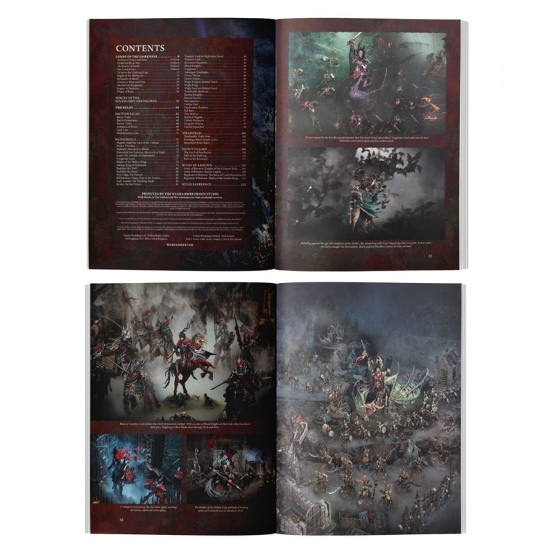 Death Battletome: Soulblight Gravelords is a vital book for collectors and gamers who wish to drain the Mortal Realms of all life. This stately tome is packed with atmospheric artwork, fascinating background material about the vampiric Soulblight dynasties, darkly beautiful photography, and the rules you'll need to carve your trail of blood. You’ll find warscrolls, Regiments and Armies of Renown, Path to Glory and Anvil of Apotheosis rules, plus a self-contained Spearhead section to help you play tight, tactical games with your collection. This book will guide you through spreading your curse, no matter how you like to collect, paint, and play with your Soulblight Gravelords.