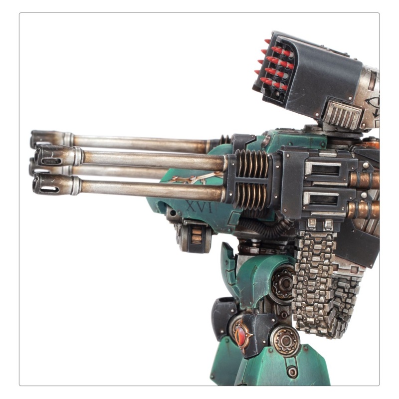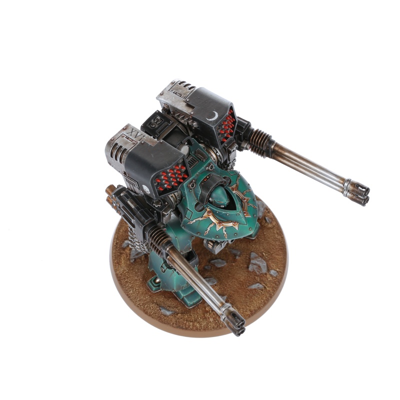The Deredeo Dreadnought is a walking heavy weapons platform, designed to combine superior firepower with the flexibility and durability of a Dreadnought chassis. Though highly resource-intensive to produce and maintain, its undoubted survivability and killing power ensures the Deredeo is in high demand by Traitor and Loyalist Legions alike from the few Forge Worlds able to fashion them.