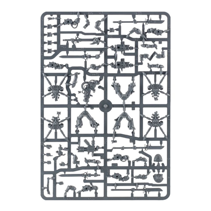 This multi-part plastic kit contains ten Grey Knights with Nemesis force swords, one of which can be built as the unit leader, a Justicar. The models are covered in the inscriptions, purity seals and other details you would expect from this army, and the Justicar features a unique helmetless head. There is an array of weaponry and unit upgrades including Nemesis falchions, Nemesis force halberds, a Nemesis Daemon hammer, a Nemesis warding stave, two psycannons, a psilencer and an incinerator.