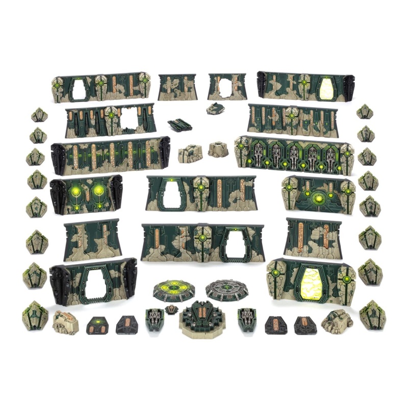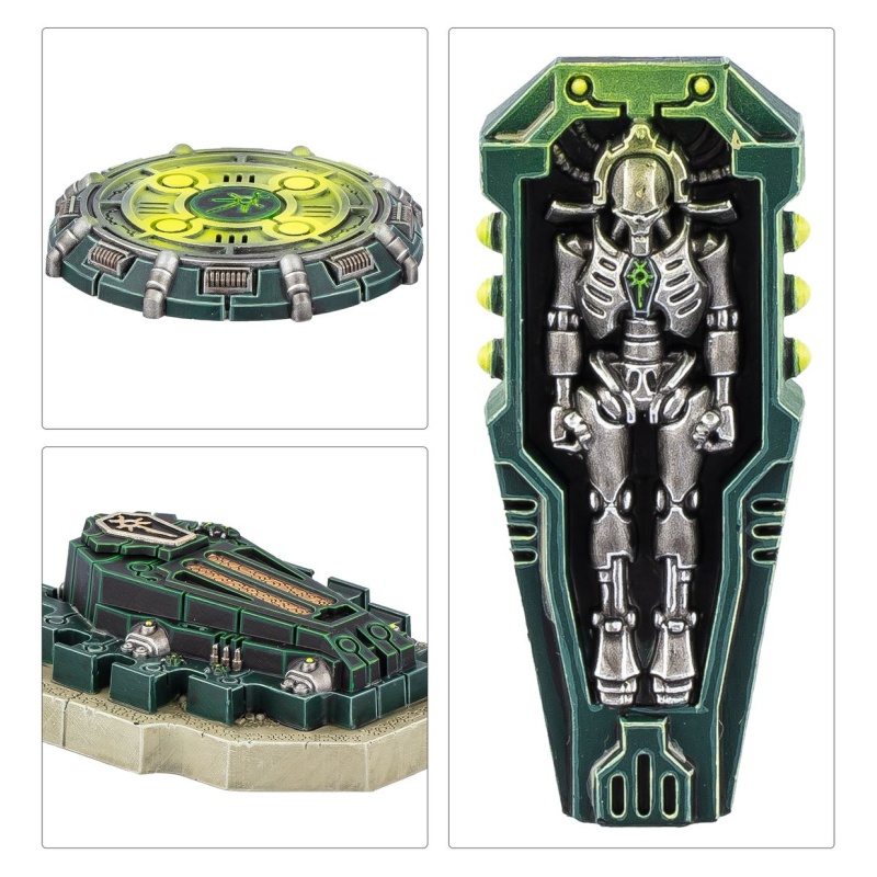 The Tomb Worlds of the Necrons are eternal mausoleums composed of strange xenos machinery. Within their labyrinthine corridors, you'll find teleport pads, deactivated Necron warriors, and a great many sarcophagi containing dormant Necrons and their constructs.
