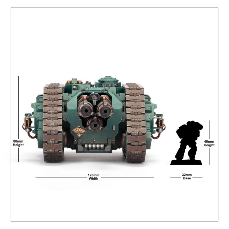 This kit comprises 221 plastic components, and is supplied with a Legiones Astartes Vehicle Transfer Sheet containing 44 optional markings and icons for the Sons of Horus and Imperial Fists Legions. This miniature is supplied unpainted and requires assembly.