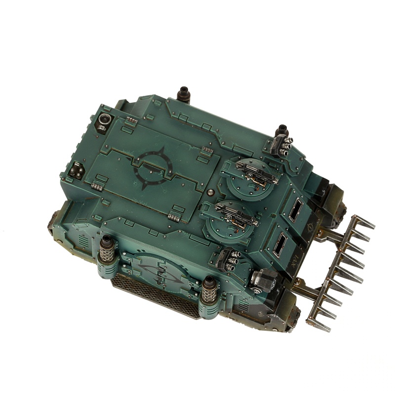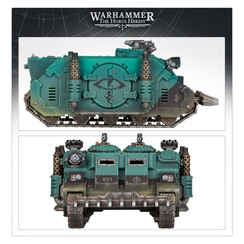The Rhino is the most widely used armoured personnel carrier in the Imperium. Based on ancient STC technology, the fundamental design is robust, reliable, and easy to maintain, with an adaptive power plant that can run off a wide variety of fuels, making it perfect for the wide-ranging armies of the Great Crusade – and the wars of the Horus Heresy. As such, the Rhino chassis serves as a basis for many other war machines, and these transports are produced in their thousands – several distinct patterns are in common use throughout the galaxy, with the heavily-armed Deimos being the most widespread amongst the Space Marine Legions.