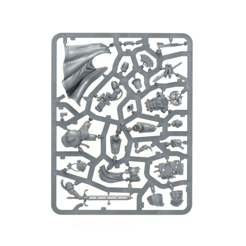 This multipart plastic kit builds one Legion Praetor, armed with a massive power sword and a searing volkite charger. This noble figure is clad in heavily modified Mark VI power armour, covered in ornate details and ceremonial items befitting of his rank, and wears a majestic cape with a sculpted rim – topped by an iron halo resembling a victory wreath. The kit includes a choice of two heads – a beaked helmet, or a bare head sporting glorious facial hair – both sporting an impressive crest with an optional tail. This model makes for an incredible painting project, festooned with decorative elements and opportunities for showcasing various textures.