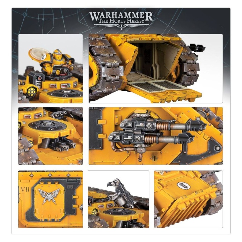 This kit comprises 213 plastic components, and is supplied with a Legiones Astartes Vehicle Transfer Sheet containing 44 optional markings and icons for the Sons of Horus and Imperial Fists Legions. This miniature is supplied unpainted and requires assembly