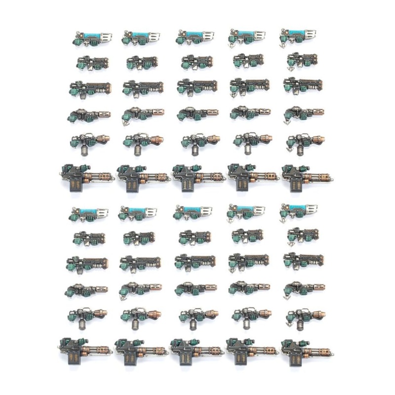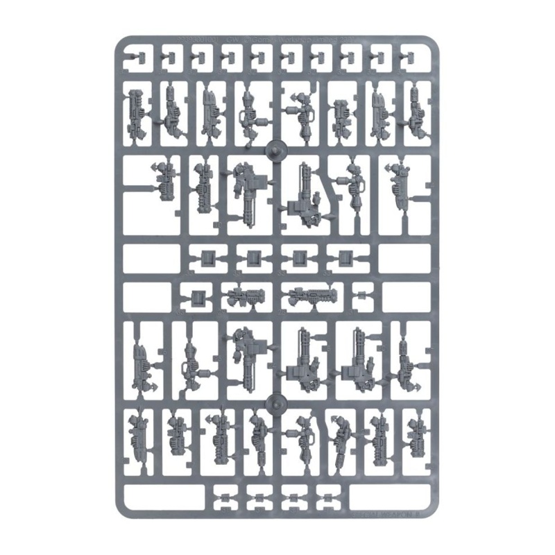 This plastic upgrade kit can be used to equip Legionaries from the MKVI Tactical Squad set with powerful special weapons, suitable for use in a Legion Tactical Support Squad. The kit includes 10 flamers, 10 plasma guns, 10 meltaguns, 10 rotor cannons, 10 volkite chargers, and 10 volkite calivers, allowing you to upgrade up to three full MKVI Tactical Squad sets into six Tactical Support Squads of 10 models, or 12 units of five models. The kit includes five slightly different designs for each type of special weapon, ensuring your Legionaries will remain distinct when massed on the battlefield.