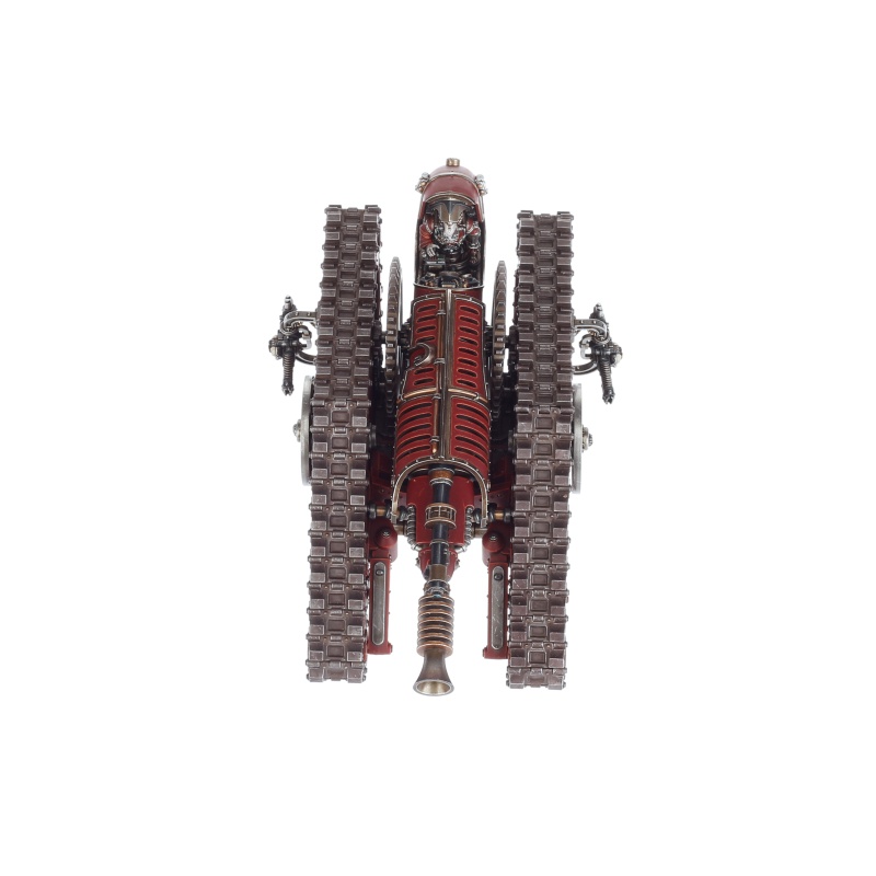 The Krios Battle Tank originated on Mars, and arcane integrated systems well outside the purview of most facilities are used to build or maintain them. Its durability is provided by interlocking defensive energy fields, rather than physical armour, lending it a deceptively skeletal appearance. Many armament patterns and hull variants of the Krios exist but the most common mount varieties of heavy energy weapons unique to the Mechanicum, such as the lightning cannon and pulsar-fusil.