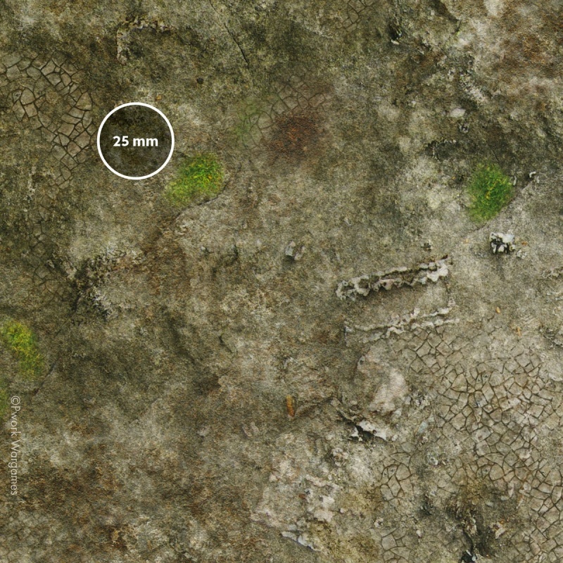 This game mat is perfect for setting fantasy battles in degraded, dusty urban settings suspended between past and future.
