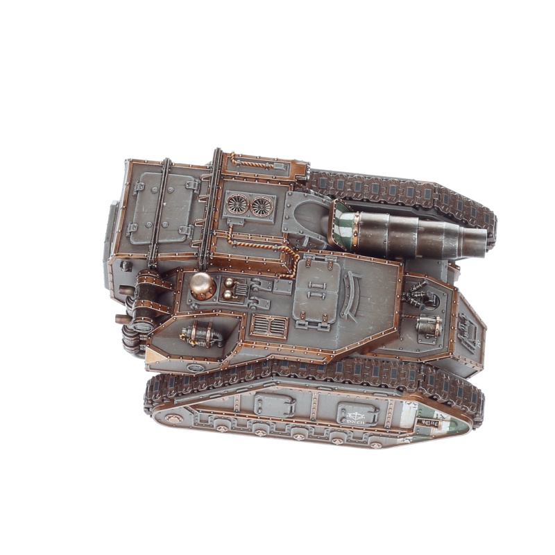 The Medusa and Basilisk artillery tanks employed by the Solar Auxilia are armoured bombardment platforms, their heavy guns mounted on a hull derived from the Leman Russ. Enclosed against enemy fire and protected from the hazardous atmospheres of toxic or alien worlds, these mobile siege batteries can keep pace with the cohort's advance, pummelling the foe's positions even as main line units move to engage any survivors.