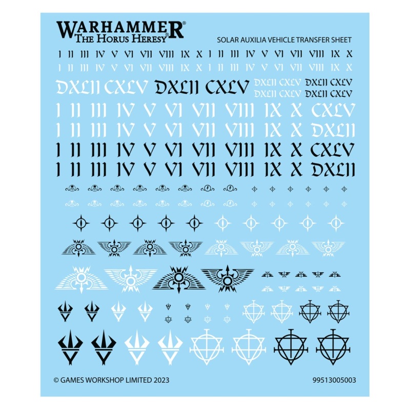 This kit comprises 187 plastic components, as well as a Solar Auxilia Vehicle Transfer Sheet containing 180 waterslide transfers. This miniature is supplied unpainted and requires assembly