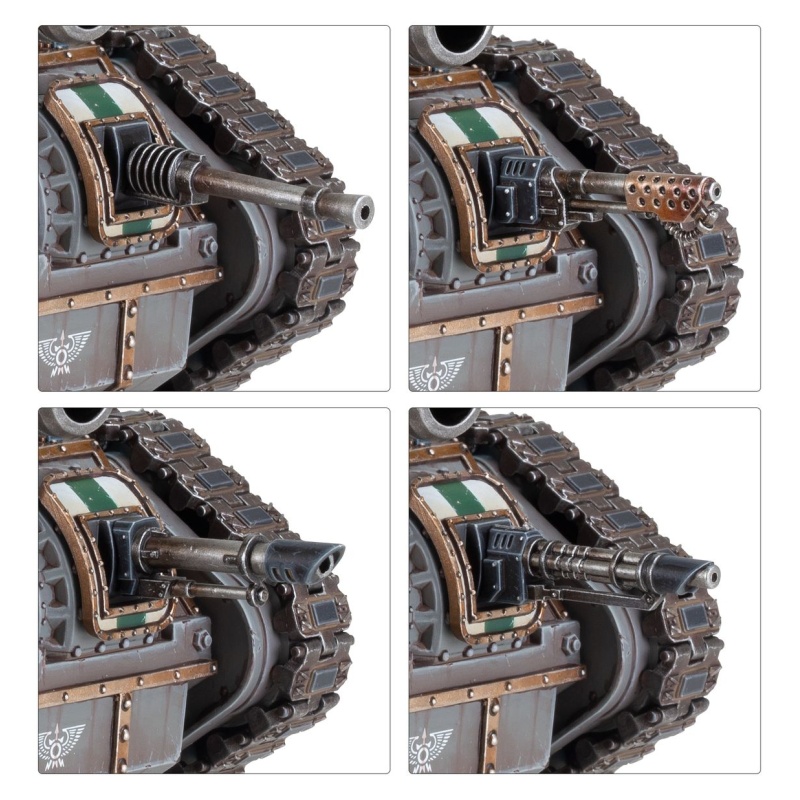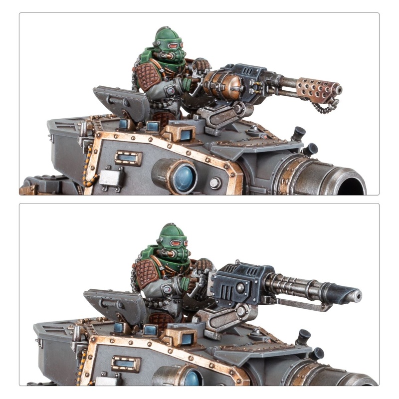 The kit includes components to upgrade your Leman Russ with a hunter-killer missile and dozer blade, and the turret hatch can be built with closed doors, or opened for a Solar Auxilia gunner with a pintle-mounted weapon – a heavy flamer, multi-laser, or heavy stubber. You'll also find plenty of cosmetic options, such as sigils, armour patches, a spotter, and a choice of crew heads.