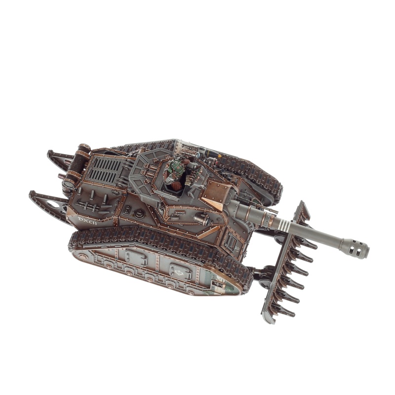 The Leman Russ Strike Tanks fielded by the Solar Auxilia are robust armoured vehicles, augmented with Solar-pattern survival systems that allow both tank and crew to operate in the harshest conditions. Squadrons of Strike Tanks are often used to perform wide flanking advances, guided by a Leman Russ Command Tank in order to engage an enemy at the precise moment the cohort's infantry sections launch their own assault.