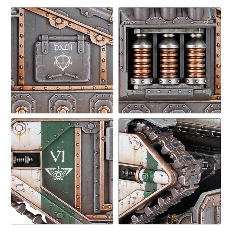 The Valdor Tank Destroyer mounts a devastating neutron laser – each a meticulously wrought iteration of a recovered relic of the Dark Age of Technology. Though rare, they're in high demand as the Solar Auxilia are called upon to fight the Legiones Astartes and their fighting vehicles.