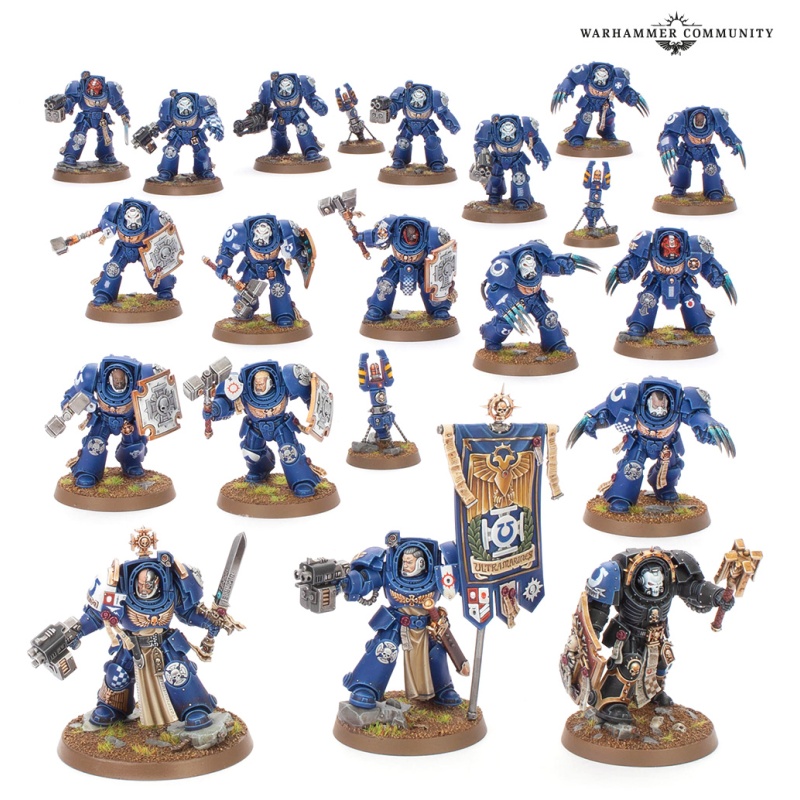 Alongside this unstoppable wall of ceramite you also get the new Ancient in Terminator Armour miniature, who flies an impressive standard, a multi-part Terminator Captain, a Terminator Chaplain, and five regular multi-part Terminators.