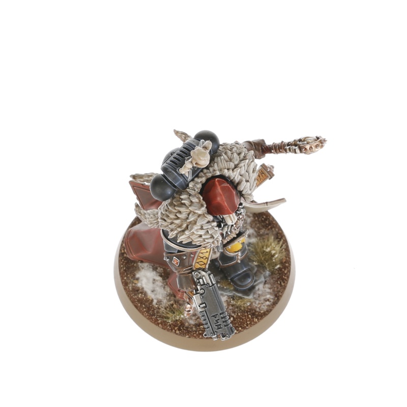 Wolf Priests are elder sages who tend to the spiritual and physical well‑being of their battle‑brothers. Clad in black, bedecked with shamanistic totems and wearing macabre wolf‑skull helms, they are terrifying to behold.