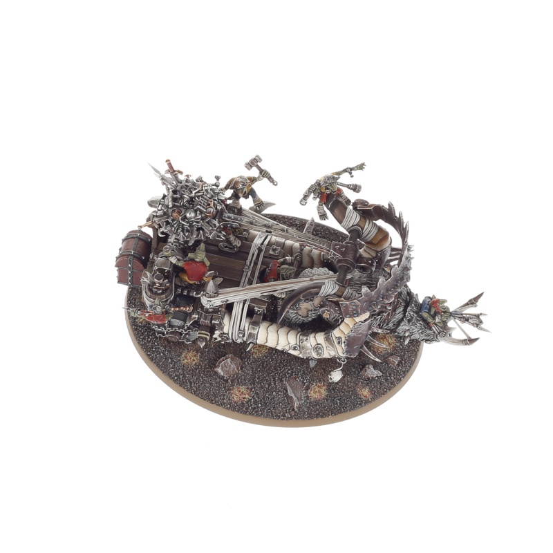 Scrapglutts trawl the deserted battlefields and rusty junkyards of the lands, driven by an ogor hunter’s obsession with fashioning mantraps. Any piece of useful wreckage is gathered by eager gnoblars and repurposed as armour and weapons for the warband.