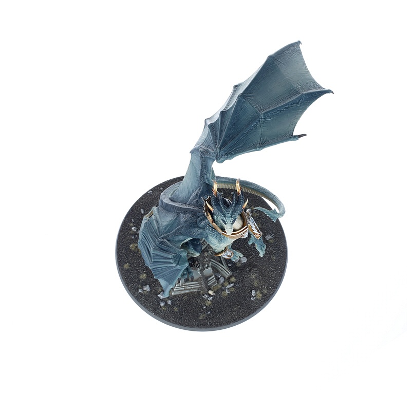 As an ancient and powerful being steeped in celestial magic, Krondys is a potent mystical force on the battlefield capable of unleashing debilitating storms on command. His magical might is matched by his prowess in melee, able to sweep entire regiments from the battlefield with a casual flick of his massive wrist, while foes are burned to ash by blazing tempests of draconic fire.