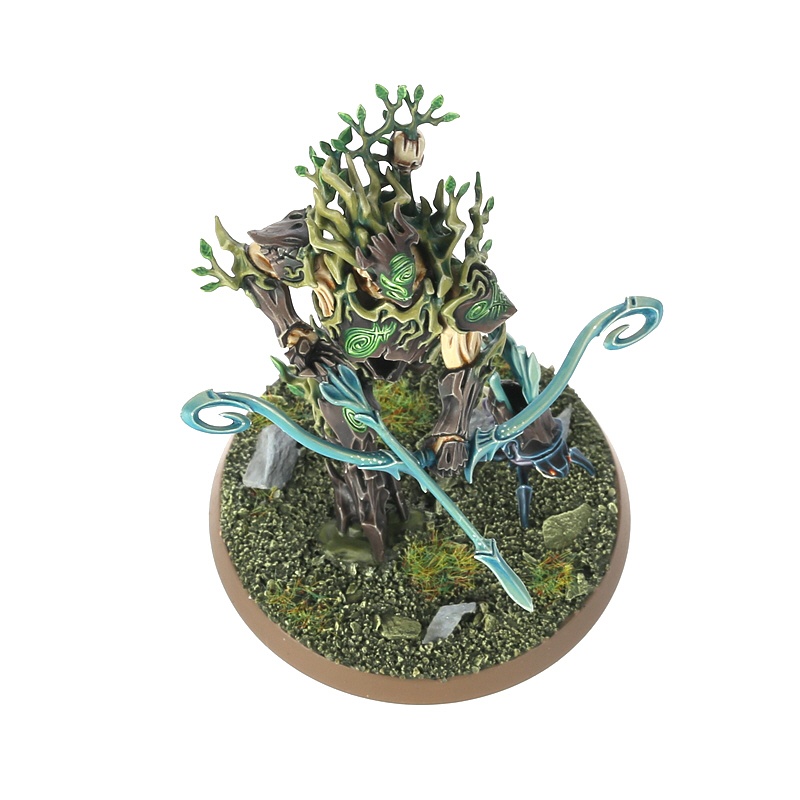 One of the few deities worshipped by the sylvaneth alongside Alarielle, Kurnoth represents nature’s wildness and hunger. The Kurnoth Hunters are living embodiments of his wrath. Nearly twice the size of a Dryad, masters of sword, bow and scythe, they are strong enough to tear a Chaos warrior in two and tough enough to shrug off the hardest blows. Agile, graceful and stoic, they display little of the whimsy of some of their kin - they display absolute purpose, calm as ancient oaks, deeply focussed on their battles.