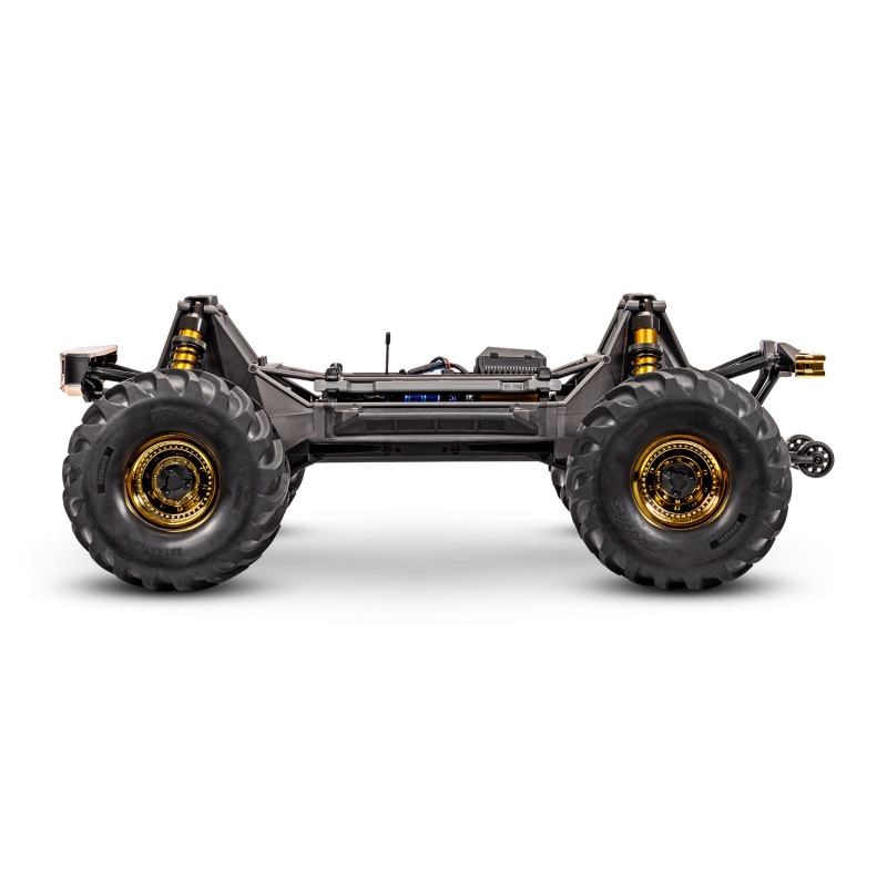 BIGFOOT 50th includes exclusive gold-anodized shocks, axles, and motor heat sink. The bumpers and wheels also receive a matching gold finish for a unique look. Even the Velineon VXL-8s ESC is molded in black plastic to match the motor. These limited-edition parts come only on BIGFOOT 50th and will not be available separately.